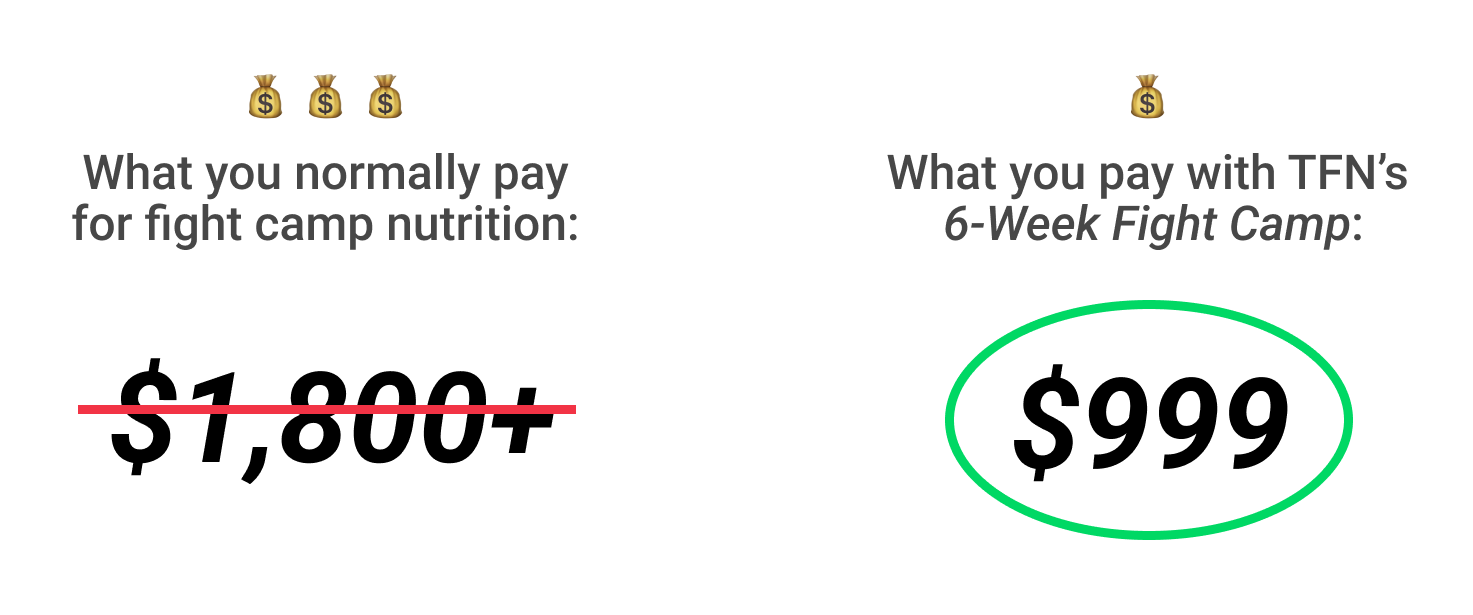 TFN's 6-Week Fight Camp and fighter diet plans have been carefully curated to take the guesswork out of nutrition, no matter your experience level. Fight and combat athletes have different needs than other athletes, which means your fight camp nutrition depends heavily on the type of foods you eat to not only ensure weight loss is happening, but also consuming nutrient-dense foods that optimize performance, energy, and recovery.